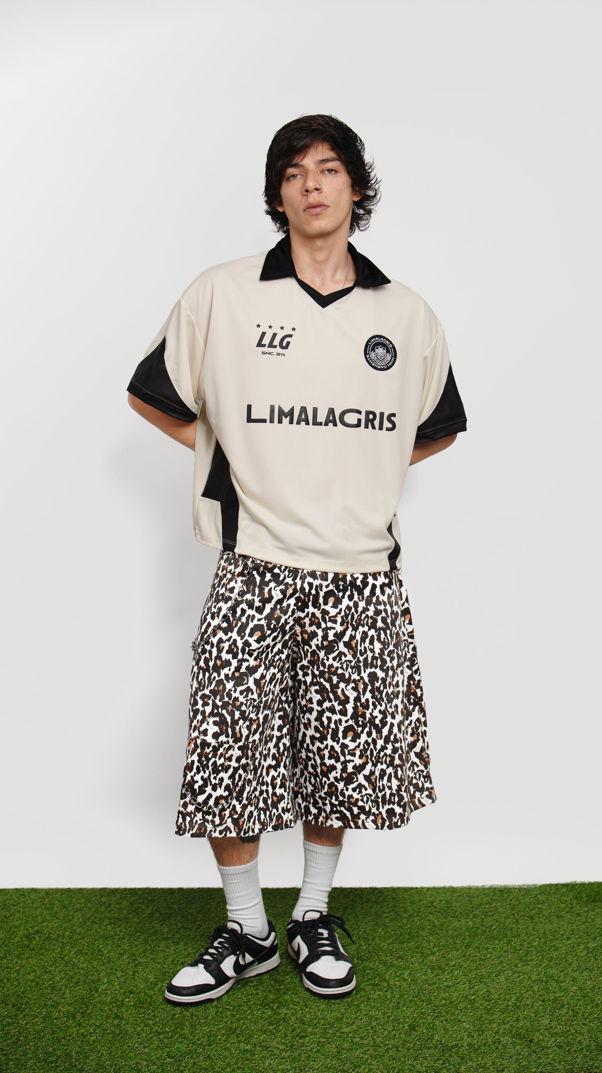 Jort unisex confeccionado en bull denim de estampado “vaca salvaje”, una pieza llamativa y de carácter urbano que marca presencia al instante. La tela es resistente y de caída estructurada, ideal para un fit amplio tipo europeo. Incluye bolsillos utilitarios y cadenas metálicas que refuerzan la narrativa de resiliencia de la colección. Una prenda de impacto diseñada para quienes se atreven a jugar distinto.