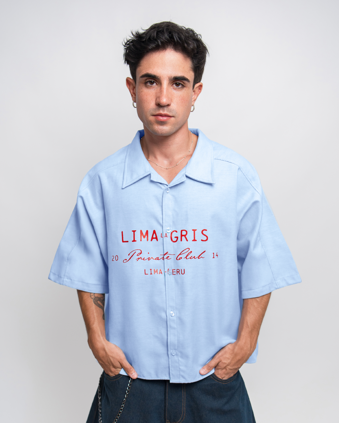 BOXY SHIRT 'PRIVATE CLUB' BABY BLUE
